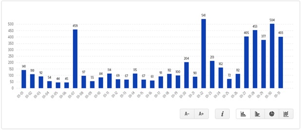 Figura 1 – Volume total de posts e comentários recebidos na página da marca, durante um mês.