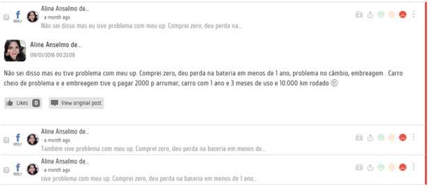 Figura 4 – Alguns posts negativos encontrados após a busca por termos relevantes.