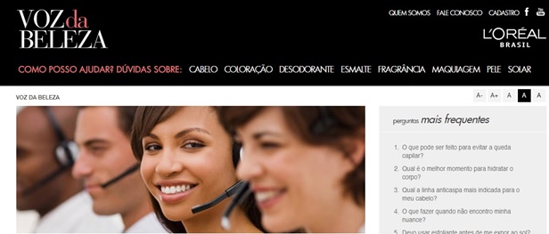 A L’Oréal criou uma nova forma de se comunicar com os seus clientes por meio da web. A companhia lançou o portal Voz da Beleza para tirar dúvidas e responder as perguntas mais frequentes feitas pelos consumidores da marca a respeito de seus produtos ou soluções. O projeto é fruto de uma pesquisa feita durante dois anos de análises dos contatos de clientes no Serviço de Atendimento ao Consumidor (SAC) por telefone e e-mail.