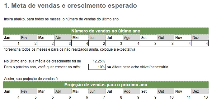 Com as taxas do seu funil fixadas e com a projeção de vendas, você faz a engenharia reversa e começa a analisar o quanto você precisaria fazer de Oportunidades, Leads Qualificados e Leads mês a mês para conseguir alcançar as suas metas.