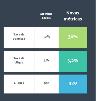 Por exemplo, se você possui hoje uma base de emails ativos de 10.000 Leads, não é factível estipular uma meta de 5.000 Leads para esse canal. Isso porque temos taxas de abertura e de clique muito menores – tanto historicamente quanto por benchmarking.