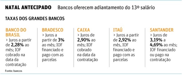 É importante também verificar se a própria empresa onde a pessoa trabalha não oferece a antecipação o 13º, nesse caso, sem juros.