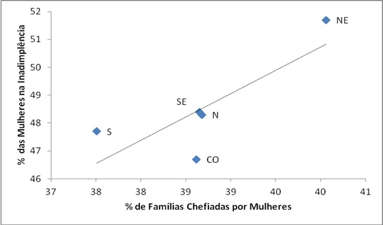 Uma das explicações para a maioria feminina na inadimplência do Nordeste pode ser o fato de a região ser a que apresenta o maior índice de lares comandados por mulheres. Segundo dados da PNAD (Pesquisa Nacional de Amostra de Domicílios) do IBGE, de 2013, 40,1% das famílias nordestinas são mantidas financeiramente por mulheres.