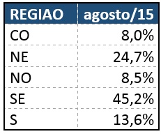 De acordo com o estudo da Serasa Experian, dos 57,2 milhões de brasileiros inadimplentes hoje no país, 24,7% estão concentrados no Nordeste, o que torna a região a segunda mais inadimplente do Brasil. O Sudeste está em primeiro lugar, concentrando o maior número de pessoas com dívidas em atraso: 45,2%.
