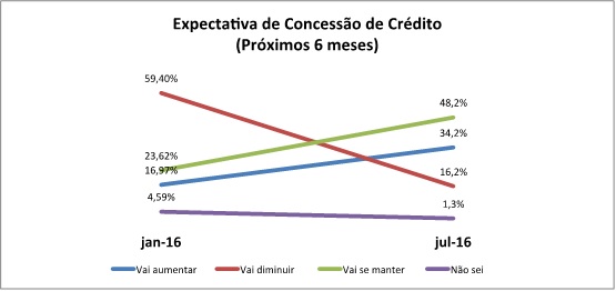 Enquanto a grande maioria 59,4% em janeiro acreditava que o volume de novas concessões iria cair, agora em julho a perspectiva mudou para 16,2%, ou seja, aumentou em 43,2% a percepção de melhora em novas concessões. “Isso está ligado também com a melhora de confiança na nova equipe econômica”, destaca Tambellini.