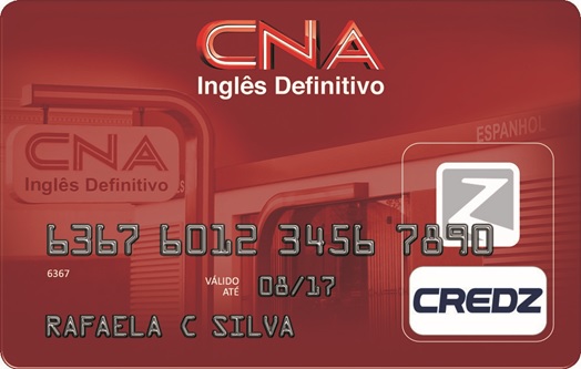 O CNA desenvolveu um cartão de crédito disponibilizado para alunos da rede em parceria com a Credz, bandeira e administradora de cartões. A ideia é que os estudantes tenham mais facilidade na hora de pagar seus cursos com o cartão, que é aceito em diversos estabelecimentos que operam com as máquinas Cielo. O serviço será disponibilizado sem custo para o franqueado e a aprovação do cartão é feita na hora na própria escola de inglês. As compras podem ser feitas à vista, com até 40 dias para pagar ou parcelada em até 18 vezes.