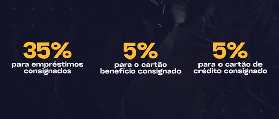 Outro ponto a destacar é que a margem consignável desta modalidade pode ser dividida entre crédito em conta ou limite para compras. Dessa forma, dependendo da legislação de cada convênio, esse valor pode ser 100% para saque, ou dividido entre as duas modalidades, sendo 70% para crédito em conta e 30% para limite para compras.