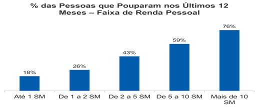 Entre as pessoas que guardam dinheiro o nível de educação financeira é maior. Novo índice revela ainda que 76% dos consumidores com vencimentos acima de dez salários mínimos tem poupança. O percentual é apenas 18% entre aqueles que ganham até um salário mínimo.