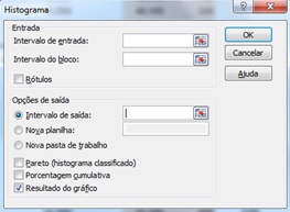 Em “Intervalo de entrada”, selecionar os 10.000 valores da coluna “Volume Total”. Em “Intervalo do bloco”, selecionar os valores da coluna referente aos blocos que criamos acima. Em “Intervalo de Saída”, selecionar a célula que receberá os dados e o gráfico. E por fim, deixar marcada a opção “Resultado do Gráfico”.