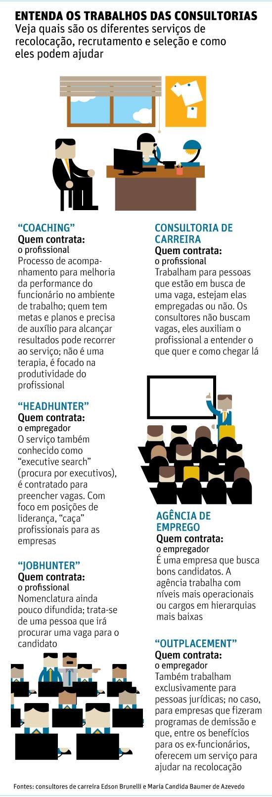 A psicóloga Ellen Assef Borges, 34, aposta no serviço. Até 2011, dava aulas em uma universidade. Agora, quer atuar na área corporativa e contratou uma consultora para descobrir o que as empresas procuram ao contratar psicólogos.
