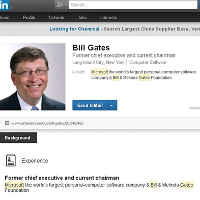 Bill Gates, que ocupa o segundo lugar na lista dos homens mais ricos do mundo pela revista Forbes, parece estar interessado em buscar novas relações no mercado de trabalho. O fundador e CEO da Microsoft criou nesta terça-feira um perfil no LinkedIn, uma rede social utilizada por profissionais, para negócios.