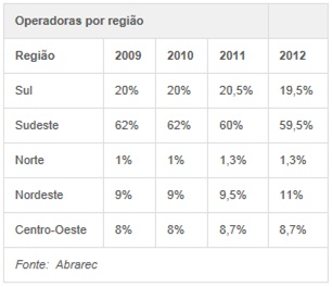 Região deve encerrar 2012 com 11% das centrais, sobre 9% em 2009.