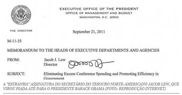 Uma assinatura que ganhou os holofotes recentemente foi a do novo Secretário do Tesouro dos Estados Unidos, Jacob Lew. A assinatura de Lew vai figurar nas notas de dólar e até o presidente Barack Obama fez piada, dizendo que quase voltou atrás na nomeação ao conhecer a assinatura bizarra do integrante do governo.