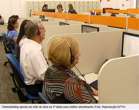 Conhecido por empregar principalmente jovens na situação do primeiro emprego, o setor de telemarketing está em busca de profissionais da terceira idade. Maturidade e comprometimento estão entre as razões para que as empresas invistam neste perfil. Para trabalhar como operador, função que emprega a maior parte dos funcionários no setor, não é preciso experiência. Isso estimula quem está a procura de uma recolocação profissional já em idade avançada ou quem quer se manter ativo após a aposentadoria.