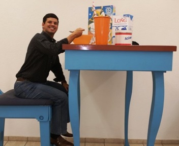 Sabe aquele ditado que diz que uma imagem vale mais do que mil palavras? Pois bem, a Figura 2 abaixo mostra eu me colocando no ponto de vista de uma criança se alimentando numa mesa de refeições. Trata-se de ambiente preparado na Escola de Marketing Industrial.