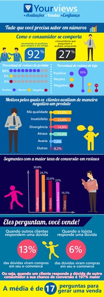 A Yourviews, empresa especialista na experiência pré e pós-vendas dos consumidores, publicou infográfico com dados de empresas brasileiras em que expõe os resultados atuais e a representação da satisfação de compra no mercado online.