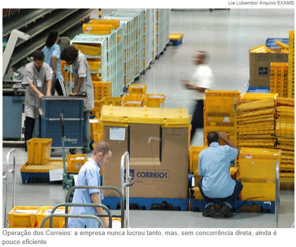 Em 2011, os Correios notificaram 368 empresas por suposta quebra de seu monopólio. A empresa tem dado lucro — o de 883 milhões de reais em 2011 foi o maior de sua história. Mas, imune à concorrência direta, ela é pouco eficiente na prestação dos serviços.