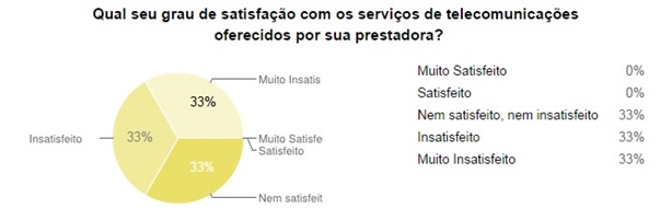 Agora, como está o grau de satisfação dos participantes com o serviço prestado pelas operadoras nos segmentos que eles mais utilizam? Ninguém está 100% satisfeito! Uma pena.