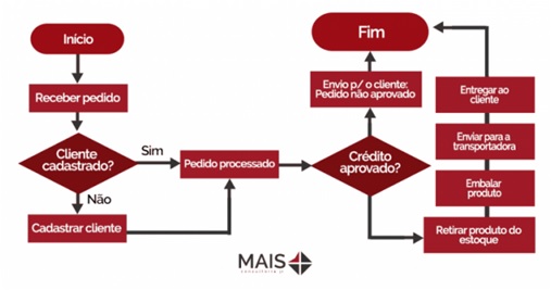Fluxograma é um sistema que organiza as etapas de um processo. Provavelmente você já tenha visto e até trabalhado com um, como o do exemplo abaixo: