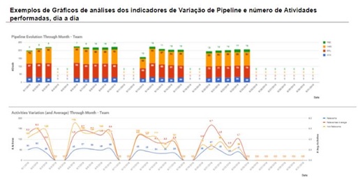 - Quantidade de atividades no dia (ligações, emails, reuniões, propostas, etc);