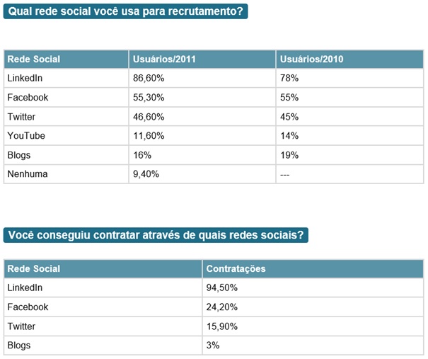 Mas apesar da gritante relevância do Facebook, a rede social profissional LinkedIn continua no topo da lista de ferramentas online preferidas dos recrutadores. Do total de participantes, 87% afirmaram que devem usar o serviço para contratar novos profissionais. No ano passado, esse número era de 78%.