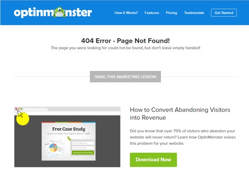 Com uma sacada muito genial a Optinmonster otimizou sua página de erro para educar seus usuários sobre uma das principais dores que sentem.