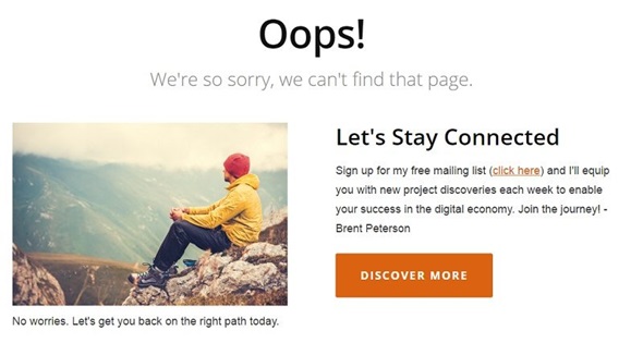 Customizar a página de erro 404, direcionando-a para a conversão, é uma excelente oportunidade de tornar uma experiência ruim em uma experiência positiva e muito lucrativa!