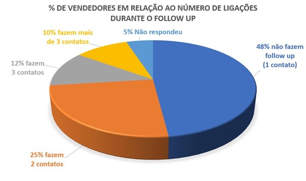 Pesquisas mostram que quanto mais ligações se fizer para um cliente, maior a probabilidade de fechar uma venda. No entanto, quase a metade dos vendedores não pratica o follow up de vendas, fazendo uma única ligação para seus clientes.