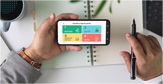 Ele funciona através do registro dos horários dos colaboradores.