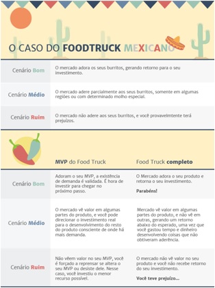 No exemplo do food truck mexicano, o conceito de MVP validou se a ideia realmente tinha potencial com feedbacks reais. O uso do conceito tornou a relação de retorno sobre investimento em um food truck de burritos muito mais consciente, estruturada e previsível.