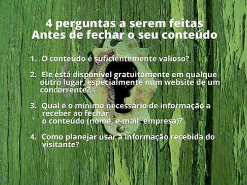 Nos círculos do marketing, o debate tem sido relativamente grande nos últimos seis ou sete anos. Entretanto: esqueça todas as discussões; as perguntas são quando e como é melhor fechar o conteúdo. Eu acredito que as respostas estão ao longo da jornada do cliente.